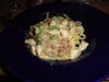 Apple Ravioli is served as an entrée. Other entrees include Filet, Balsamic Chicken, Pistachio Walnut Chicken and Italian Style Meatloaf, among many others. From the entrée menu, we ordered the Seafood-Stuffed Striped Bass ($20) and the Veal Oscar ($19). Both were very good. From the pasta menu, which is also extensive, my husband ordered the Seafood Bake ($19), which was generous on the seafood and featured a creamy red sauce.