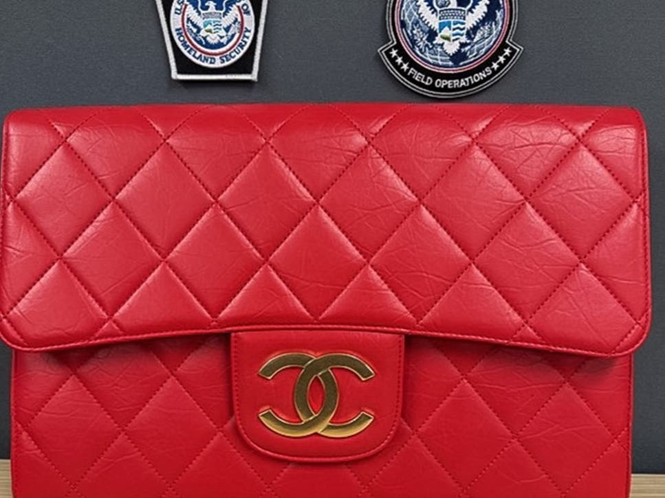 CBP officers inspected a parcel that arrived from China via air cargo. The parcel contained designerbrand products, including five handbags, five scarves, three bracelets three necklaces, and a set of earrings bearing the brand names Chanel, Christian Dior, Fendi, Louis Vuitton, and Van Cleef & Arpels.