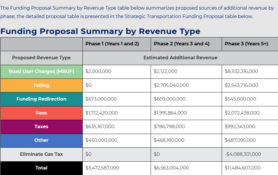 Various increased fees are proposed, including hikes in vehicle registration, rental, lease and rideshare fees. New fees could include an aircraft registration fee and a goods delivery fee on Amazon, FedEx, UPS, grocery stores, restaurants and other businesses that deliver to homes.