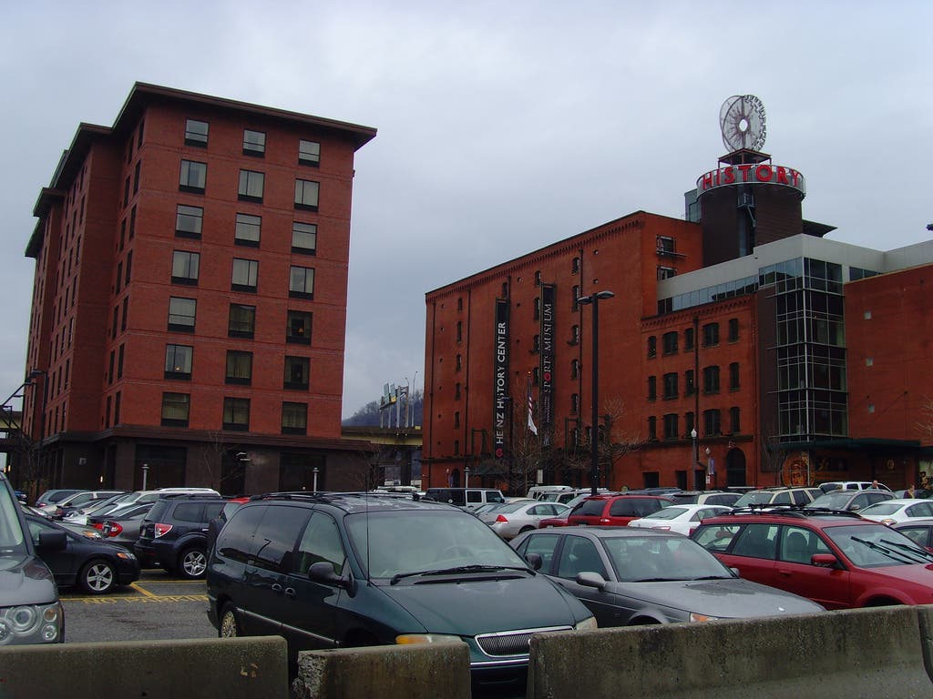 Convention center photo by Dmuth via Creative Commons; PNC Firstside Center by Allie Caufield via Creative Commons; Children's Museum photo via public domain; Phipps Conservatory photo by Daveynin via Creative Commons; Heinz History Center photo by Klaus Nahr via Creative Commons; Greater Pittsburgh Community Food Bank by Driving the Northeast via Creative Commons.