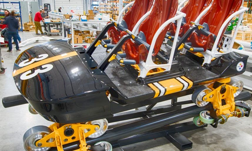 “You can definitely tell you’re in Steelers Country when you board this vehicle,” Kennywood general manager Jerome Gibas said in a statement “With the Steel Curtain setting the North American record for most inversions, it was critical that the trains offer riders a safe and comfortable experience that has them eager to ride again and again.”