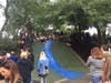 At the top of the slide was a memorial to Miller that included photographs, portraits and flowers. That’s where fans gathered initially before packing the entire park for the candlelight vigil as dusk fell.