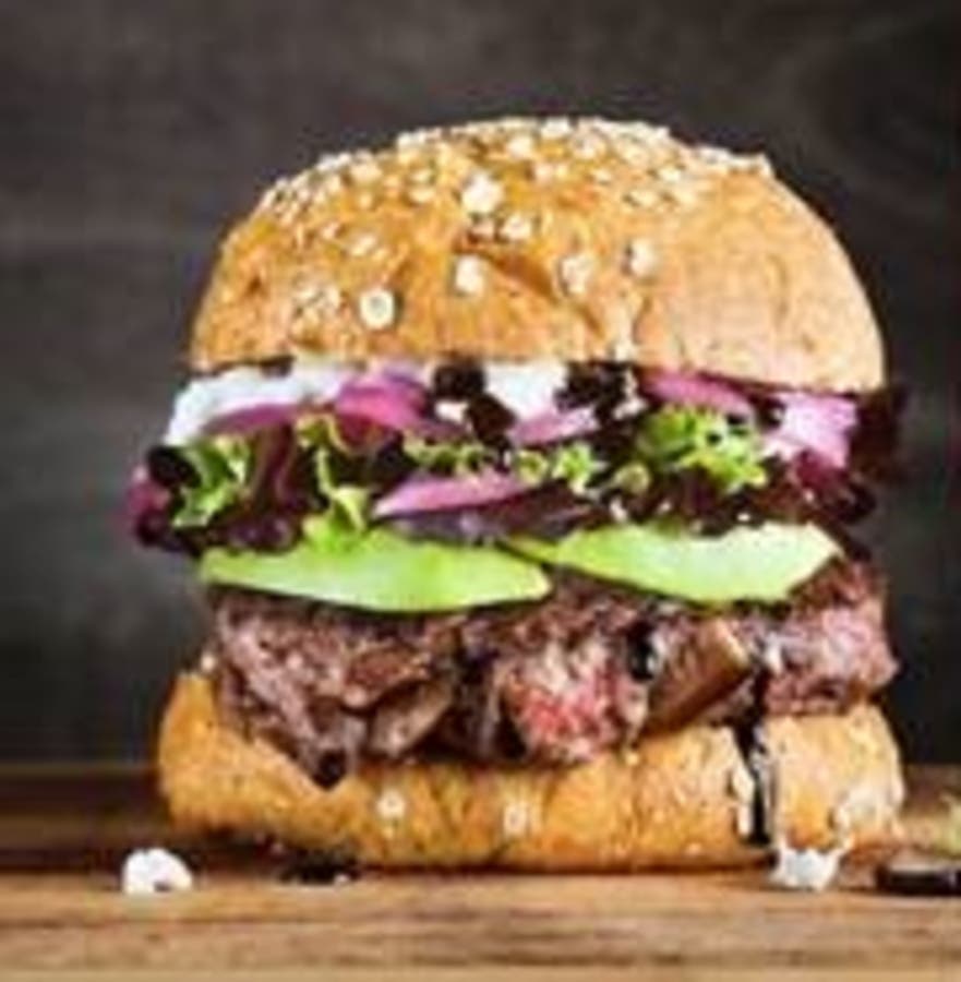• Curb Side Bistro, Odessa, TX: El Tejano Borracho (The Drunken Texan) consists of 70/30 blend of ground beef and a blend of mushrooms, including shiitake, white button and portabella, topped with pulled pork, tangy barbecue sauce, jalapeno and mushroom corn fritter, cilantro ranch, pickled red onions and a mushroom white queso cheese sauce all sandwiched between toasted brioche buns.