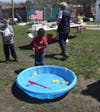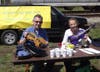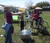 There was a bicycle rigged up to give fountains of water, plastic newspaper and grocery store bags woven into attractive purses and floor mats, a purple violin, flower pots given away, music, activities for youngsters, and a place to relax. Â Hopefully the pictures will tell the story.