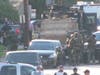 Perez was wearing a white shirt and was in handcuffs as he was escorted from the building shortly after 5:30 p.m.