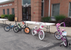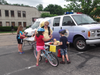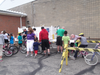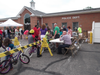 As soon as the Verona 5K race was finished; Verona Municipal building parking lot was transformed into a Bike Derby. Pat McCarthy and Gus Bell's group found each bike’s serial number and wrote it down; Rhoda and Don Worf measured and distributed helmets, Dirty Harry’s guys examined the bikes and made repairs; Bonnie Conway. Annette Bracken, and Linda Romick made hot dogs and popcorn and passed out the Hugs. Other helpers included