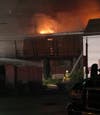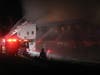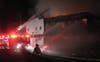 Local firefighters are in the process of extinguishing a large fire at the Verona Moose on East Railroad Avenue. Portions of the building already have collapsed.