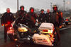 Warm woolen mittens, long, wrap-round scarves, earmuffs galore, and snowflakes flurrying 'bout. It was that kind of evening: colder and darker by the minute. Chilled marchers and riders all had hopes of hot chocolate and cookies waiting for them at the end of the parade route in Oakmont.