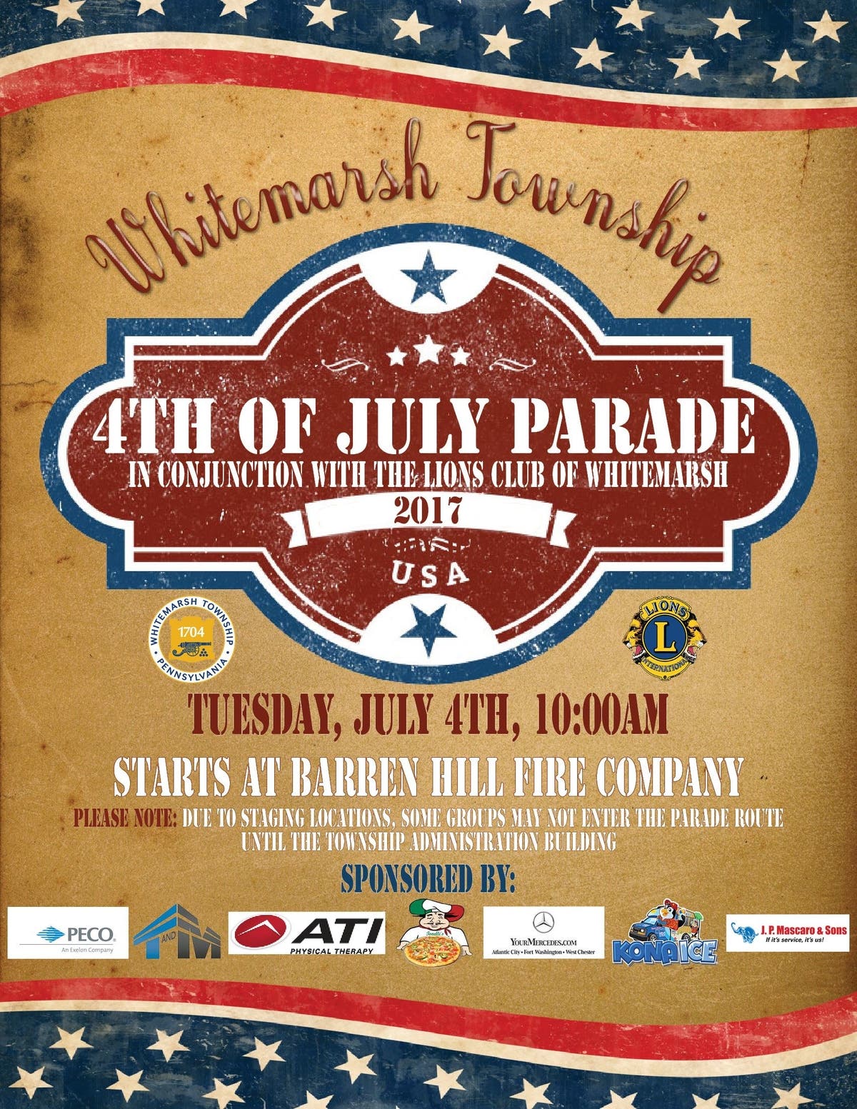 Whitemarsh Township will hold their annual 4th of July Parade next Tuesday beginning at 10 a.m.