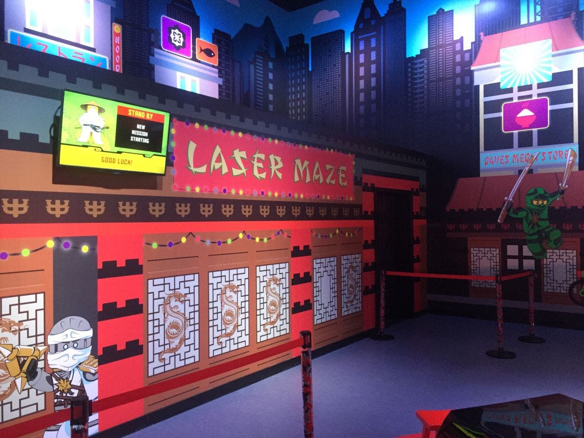 The remainder of the main floor is made up of play stations that incorporate various challenges, encouraging children to implement their newly-built race cars on a racing track, and to pit their battle-ready ninjas against one another. There are also guided building classes, a laser maze, a jungle gym-like play area, a snack bar, and, of course, an amusement ride.