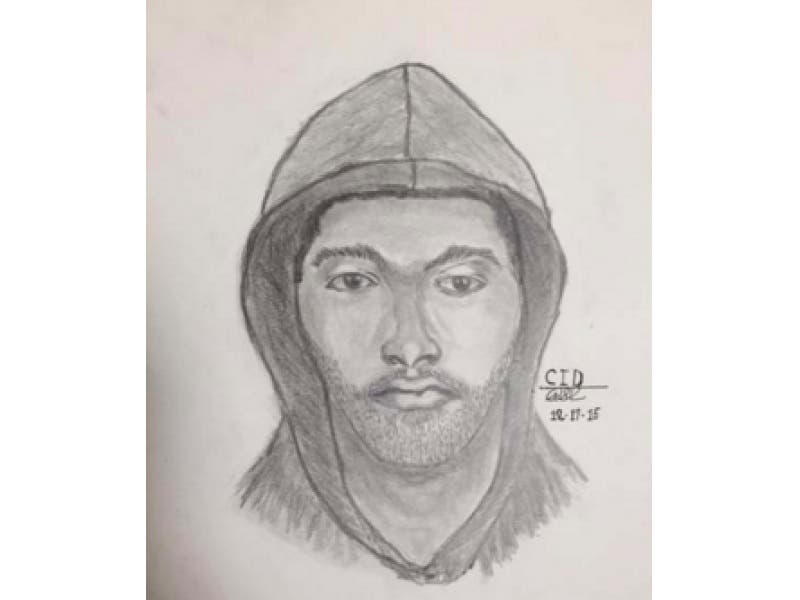The suspect is approximately 5’10” to 6’0” and has a thin muscular build. He was wearing a black zip up nylon jacket with an attached hood along with gray pants.