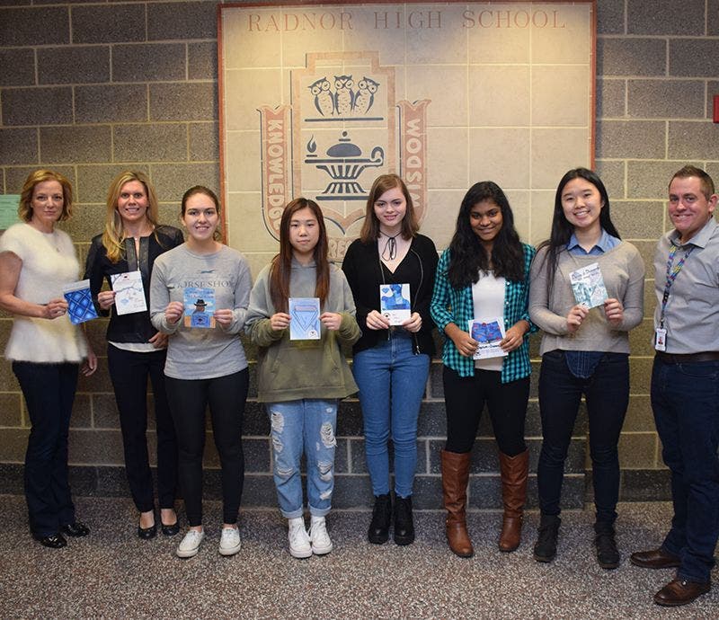 Pictured above, from left to right, are: Radnor Education Foundation Director Meg Haist, REF Winter Benefit Co-Chair Julie Granson, Brooke McCormick, Tracy Zhang, Morgane Dominguez, Sarah Vizz, Anne Chen and Radnor High School art teacher Erik Barrett. Not pictured: Anoush Kojouri and Ana Paduani.