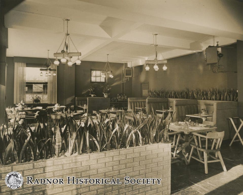 It was located in the corner storefront of North Wayne Avenue and Station Road in downtown Wayne. Since then, the space has been O'Brien's News Agency and The Pear Tree, which recently closed. Out the far window, the train station platform is visible, as well as a large sign reading "Parking For Patrons of PRR Only."