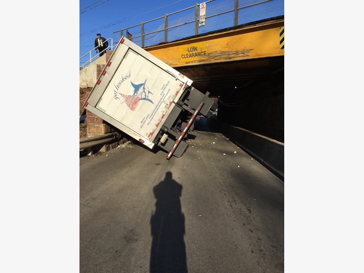 The driver, who was not injured in the crash, frequently travels on that road, police said. However, the truck he typically drives was out of service and the truck he was driving Thursday has a different height that is obviously taller than the bridge's posted clearance.