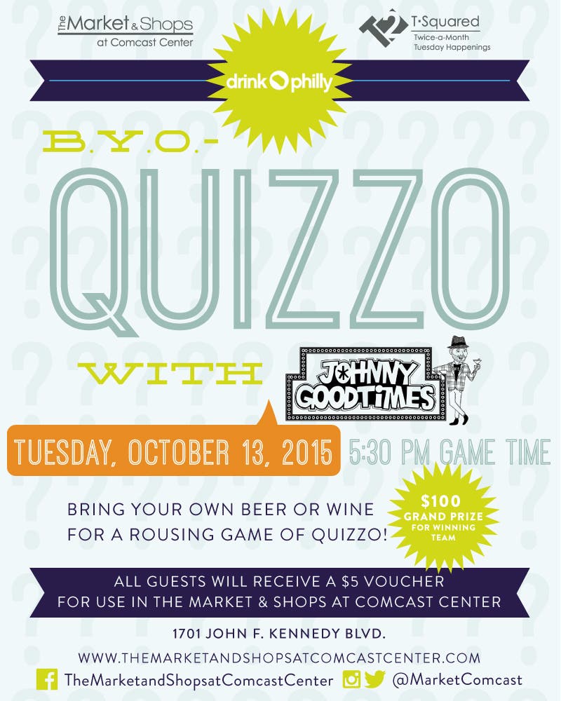 Grab a team, and your favorite beer or wine and join us for Quizzo with Johnny Goodtimes and Drink Philly! Event is FREE and open to the public. Winning teams get $100 gift cards to spend in the Market & Shops at Comcast Center! Let the games begin!