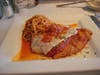 For the main course, my wife went with another standard dish—chicken Parmesan with spaghetti. It was a big hit, especially the way the chicken fell apart. I ordered the involtini di prosciutto, which consisted of two veal medallions wrapped in the Italian ham and stuffed with fontina and sage served over mashed potatoes with a side of carrots and spinach. Impressively, it was even better than it sounds.