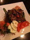 The grilled beef salad was stunning to look at but the Thai chili slices throughout the dish simply added too much heat. There was a slight cooling effect from the mixed greens, peanuts, cucumbers, tomatoes and julienned carrots but the dish was hotter than five-alarm chili and I had my water glass refilled about a half a dozen times as I attempted to eat this dish.