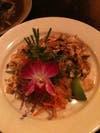 For our entrees the chicken pad thai, razor clams with noodles and beef with sweet basil more than made up for the uneven appetizers. The chicken pad thai is among the best I have EVER tried in my life. Grilled pieces of white breast meat chicken appeared generously throughout the dish. The noodles were perfectly cooked with just enough bite. The peanuts, bean sprouts, egg, carrots and grilled lime wedge added so much flavor to the dish. There was a nice balance of sweet (palm sugar, tamarind paste) and savory (fish sauce) that is the hallmark of great pad thai. The orchid on top was a show stopper.