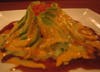 The Rainbow Roll was a foot-long, multicolor chain of rice rolls topped with thin slices of avocado and multi-colored fish (salmon, tuna and yellowtail). The fish was delicate and fresh, and for the price, $9.25, this was an exceptional value.