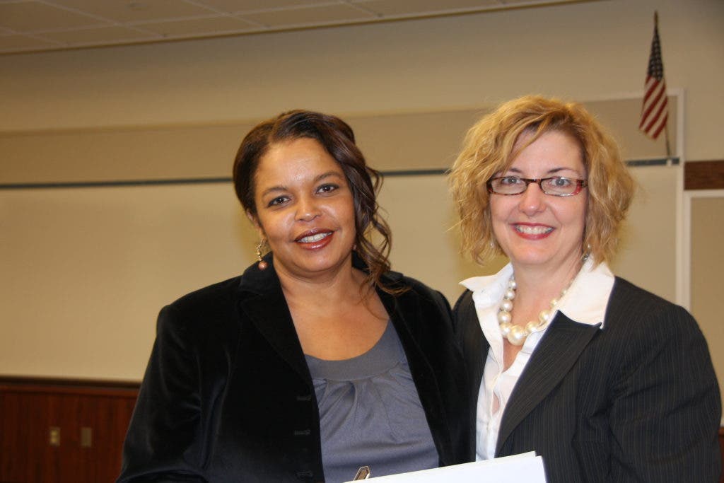 Quaker Valley Assistant Superintendent Heidi Ondek presented Crystal Richards with a certificate and a brass bookmark at Tuesday's board meeting to recognize the district bus driver for taking swift action at the scene of a November house fire.