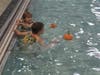 This year, staff members said 90 children participated in the fourth annual "Great Pumpkin Swim." Kids swam through the large pool and picked orange pumpkins on Saturday from the floating pumpkin patch.Â