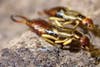 Starting in the late summer, mom and dad European Earwigs work together to build a burrow below the surface of the ground. They will hibernate together over the winter. Sometime in early spring, before she lays a batch of eggs, the moms will kick the dads out of the nest. After a long winter, he must be pretty hungry. Her batch of 60-100 eggs would be a perfect snack for him.