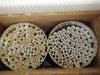 You can make your own bee blocks drilling 5/16” holes in a block of untreated wood. Alternatively, a quick search of the Internet will reveal several suppliers of bee blocks. Some blocks come with a variety of different sized holes. These have the advantage of providing homes for different species of native bees. If you want to establish a strong mason bee population using bee blocks, it’s best to alternate between two sets of blocks: one block for the bees from the previous year and a different empty block for bees to start nesting in. In early spring, put the block out in a dry, somewhat shady and protected spot. I put mine below an eve of the house. After Memorial Day, when all of the holes are filled up, it’s a good idea to take the block out of the garden and store it in a cool indoor location. Early next spring, when you put last year’s bee block back out in the garden, put it in a cardboard box with some bee-sized holes in it. You want the bees to be able to get out of the cardboard box. Since they can’t see the wood block holes from the outside of the cardboard box, they won’t go back in. This way, this year’s bees will not be able to return to last year’s block. This “two block” system allows some bees to start setting up shop before others have woken up from their winter sleep. Wooden blocks need to be properly scoured out and sterilized with a small amount of bleach between uses, or the mites they harbor will kill the bees that use them. Having only one block makes this step more complicated than it needs to be.