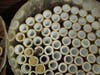 There are two ways to “keep” mason bees. One is by setting out wooden “bee blocks” with holes drilled in them. The other way is to use commercially available cardboard tubes.