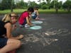 Today, the children played ball games in the parking lot. Sidewalk chalk artwork covered the ramp leading to the pavilion entrance. Youngsters ran in and out of the building trying to decide which of the many activities they wanted to do.