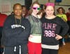 Emily Philips and Emily Hutchinson were happy to get dressed up. Hutchinson wore two-toned shades and an off-the-shoulder top; Phillips sported pink sunglasses and hoop earrings.