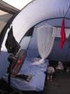 When I walked into the camp I saw generators that were cooling cargo containers presumably filled with food. I saw tents packed tightly together as far as I could see. I also saw an enormous dining tent complete with doors. "And what's that?" I thought. "That's condensation on the doors of the dining tent! Oh my gosh! IT'S AIR CONDITIONED!!!" I certainly was not expecting that.