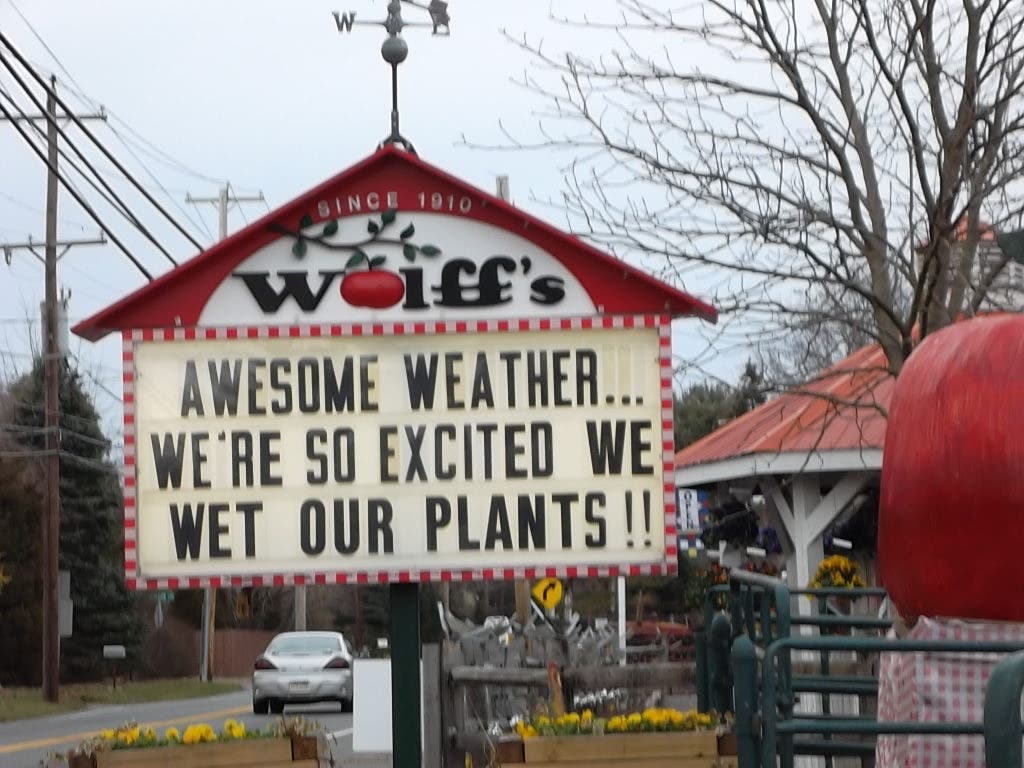 Doug happened to ride by their place and saw their great spring sign which shows they are in great spirits with this early spring weather.