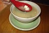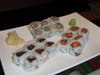 Leslie tried a hotchpotch of five different sushi varieties in her Sushi Lunch Special. There were shrimp with sticky rice, California rolls with crabmeat, salmon and lobster with ginger root, wasabi and soy sauce. I tried a California roll, another new taste for me, which was light, cool and refreshing. With the lunch special comes Miso soup, a mixture of tofu and seaweed in broth. She said she enjoyed everything, and, like myself, had leftovers to take home.