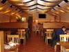 When I first walked into , I noticed the calm, warm feeling of the restaurant and the quiet atmosphere. There were pots of purple orchids near the window and paintings of flowers on the walls. But what is most unique about the ambiance are canopies of tan fabric strung on the ceiling that softened the glow of the lights behind them. It was so pretty, and I had never seen anything like it before.