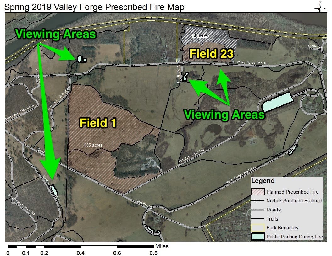 A 135-acre area is the target of the burn. That area is along Valley Forge Road/PA Route 23 and Gulph Road.