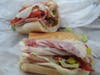 Finally, I arrived at my “Real” Italian Hoagie. Its looks perturbed me. The first few layers of meat were topped with the sweets, hots, lettuce, tomato and onion: pretty customary. But then, it was topped again with prosciutto and a second cheese.