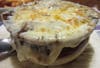 We eventually decided. I ordered a crock of French Onion soup, a side order of Fries with brown gravy and a Chicken BLT Salad. My Mother-in-Law, a cup of Lentil Soup, and the Open Faced Turkey, that came with a side of Mixed Veggies.