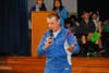 Fanelli, who competed for American Samoa in the 1988 Olympic marathon in Seoul, South Korea, has a reputation as "the crown prince of road racing" and did not disappoint. Dressed in a bright running suit, Fanelli spoke with the children and fielded questions from an audience of children, parents, and teachers gathered for the monthly town hall meeting.