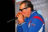 Fanelli then seemed to surprise everyone in the room, primarily a pair of student drummers on stage, when he asked them to play a beat on their drums. Fanelli removed a pair of black sunglasses and a harmonica from his track jacket and began to play his own bluesy-version of "Sitting on Top of the World."