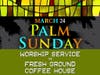 Our upcoming services begin with Palm Sunday in the FRESH GROUND Coffee House on Sunday, March 24 at 10:45am. Worship in FRESH GROUND on Sunday mornings is always a great time of praise, and this week, especially, as we celebrate the time when Jesus entered Jerusalem triumphantly. Come for coffee, hanging out together and worship.