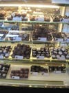 Temptingly near the check-out counter is a glass-enclosed candy counter of homemade truffles and chocolates from Texas.