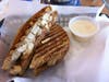 The Chicken Cordon Bleu Panini ($5.50) had chunks of chicken, smoky from a quick visit to the flattop grill, a thin slice of ham, and melted Swiss cheese.