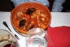 The cioppino ($25.95) was served in a large crock, but was more of a pasta dish than a stew. Linguini, mussels, clams, shrimp, calamari rings, imitation crabmeat and what my husband called “the best scallops he has ever eaten” were all mixed together in a thin tomato sauce that the kitchen can spice up upon request. My husband asked for it spicy, and they were happy to oblige.