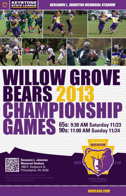 The Willow Grove Bears are excited to announce that 65- and 90-pound teams have earned spots in the Keystone State League championship games.
