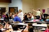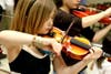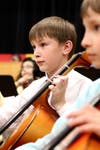 Four classes of third-graders performed songs with both vocal and orchestral skills. Director Dough Bolaski first led the 30 plus student orchestra in numbers such as "Old MacMary Had A Little Farm" and "Tick-Tock Back-Talk" with their violins, violas and cellos.