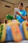 From cakes named "Bonfire at the Beach" to "I Scream, You Scream, We All Scream for Ice Cream," kids were exceptionally creativeβan ice cream truck coated in white fondant, crafted trees made of chocolate-covered ice cream cones and green-dyed Rice Krispies, a detailed campfire scene made with pretzels, miniature marshmallows, chocolate-covered raisins and gummies, and fish gills made of coated potato chips!Β