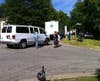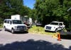 The actors' trailers were set up along Hollow Tree Drive. A shuttle was taking the cast and crew to and from the house being used for filming, located on Merry Oak Lane. The house is currently for sale and is listed for $1.9 million.