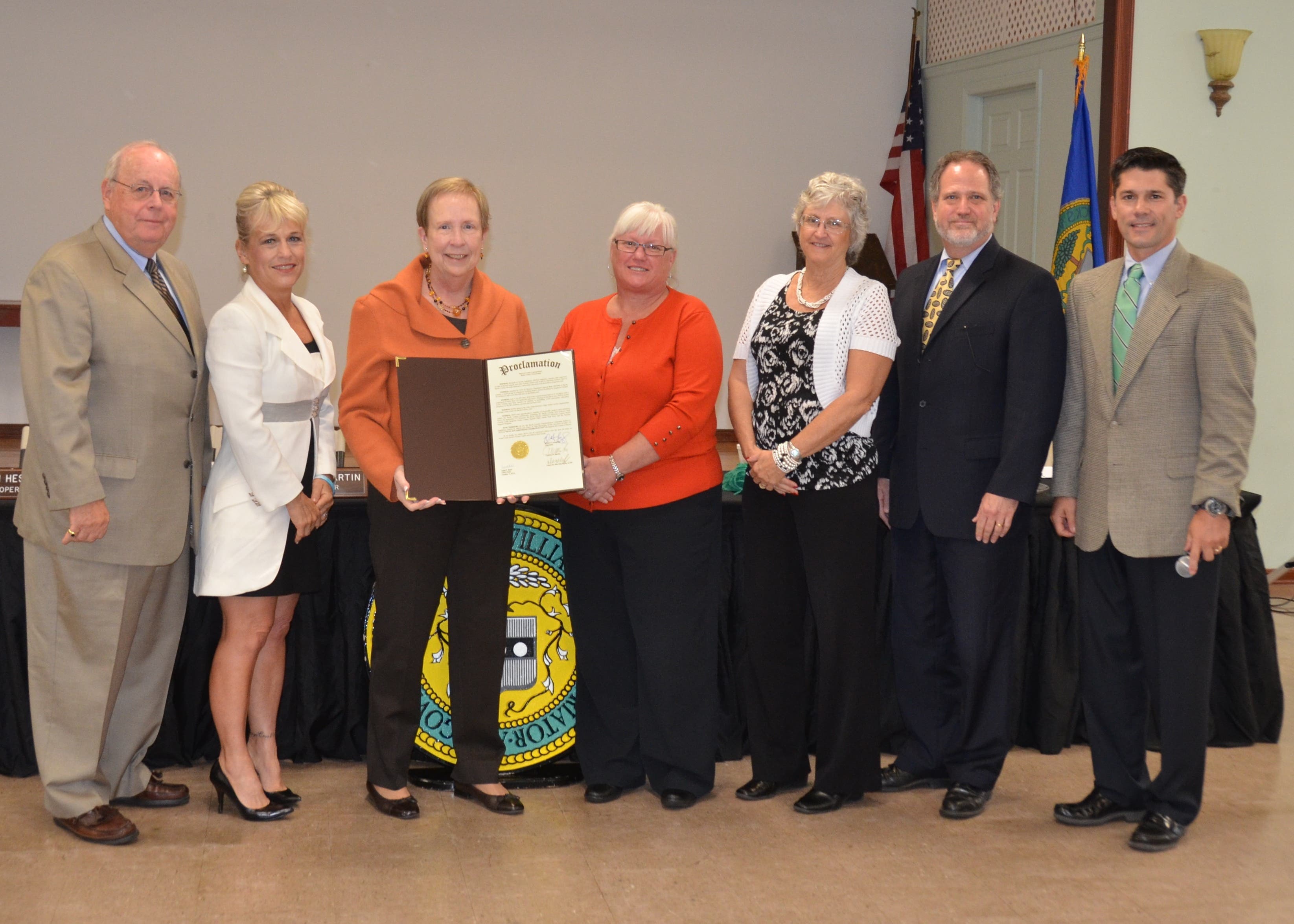Shown in photo with county proclamation are, from left, commissioners Charles H. Martin and Diane M. Ellis-Marseglia, LCSW; Barbara Clark, NOVA executive director; Connie Lindenmuth, secretary, NOVA board of directors; Barb Paul, member NOVA board of directors; Bill Hoblin, NOVA director of community relations & development; Robert G. Loughery, chair of the board of commissioners.