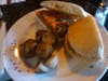 “The seasonings, and it’s a much denser patty,” our waiter says after dropping off the pliskavica (Albanian burgers). Sheltered in focaccia given a slight, cushiony underpinning and light coat of oil, I’m ambivalent towards the differences between this burger patty and its more evolved, particularly grass fed varieties. The saving grace are the spices, the oily provolone, and the capers and sautéed red peppers that match up so well with the bread’s crisp top. Roasted potatoes blessed by fresh rosemary and given an appropriate cast of extra virgin olive oil fill out the plate.