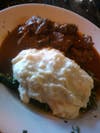 Just as quibbling begins to take form in my mind - where’s the paprika, the sharp spice notes I’m used to in a goulash - a lazy swipe of my fork moves through a beautiful chunk of braised beef like a katana, the beefy course of these jutting islands leading me to creamy, brilliantly whipped mashed potatoes infused with the flavor of their sautéed fresh spinach and garlic foundation.